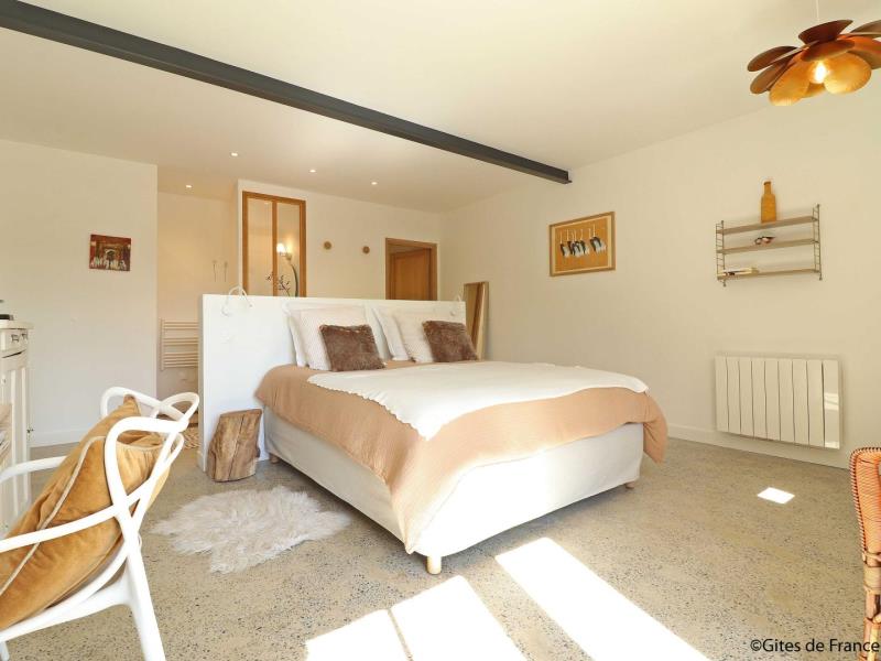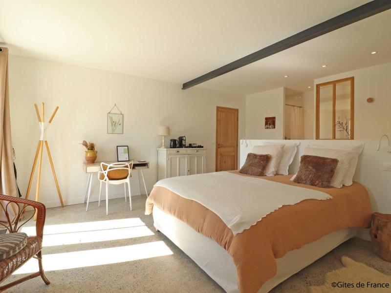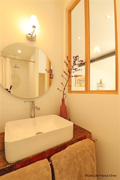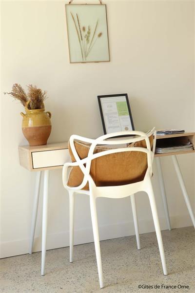 Très belle chambre LA BARIE ouverte sur la nature : vous profiterez d'une agréable terrasse exposée Sud Ouest face au jardin bucolique. Située à seulement 7 km de la Petite Cité de Caractère de Mortagne au Perche. Massage et spa à l'institut de beauté du village à 800 mètres. Bruno et Caroline ont entièrement réhabilité leur propriété Percheronne de 8 hectares et vous propose également un gite de 2 chambres, décoré avec goût et raffinement. Chambre d'hôtes de 25 m² en rez de jardin avec entrée extérieure et terrasse privative : lit 2 personnes 160 x 200 cm face à la baie vitrée, petit salon avec 2 fauteuils et table basse, bureau idéal pour le télétravail en Wifi par la fibre, salle d'eau ouverte sur la chambre avec douche et lavabo, wc séparés. Jardin non clos. Boulodrome, badminton, vélos à assistance électrique. Parking réservé équipé d'une prise de recharge pour véhicules électriques.