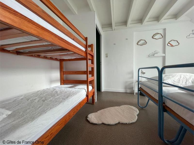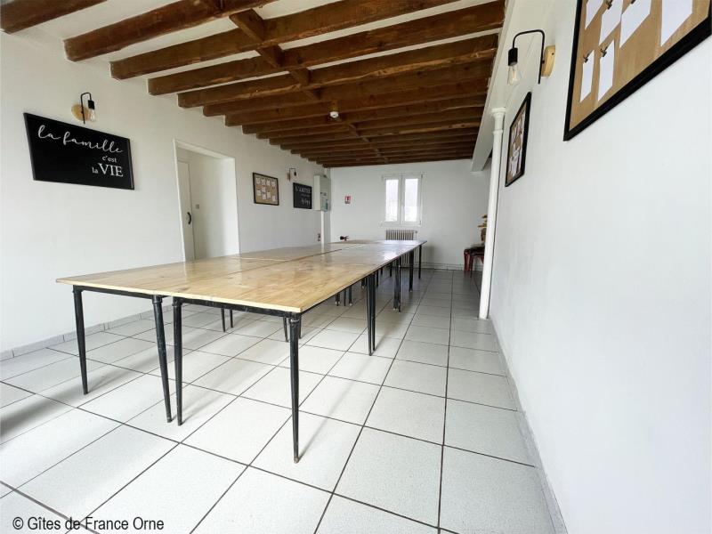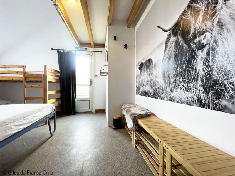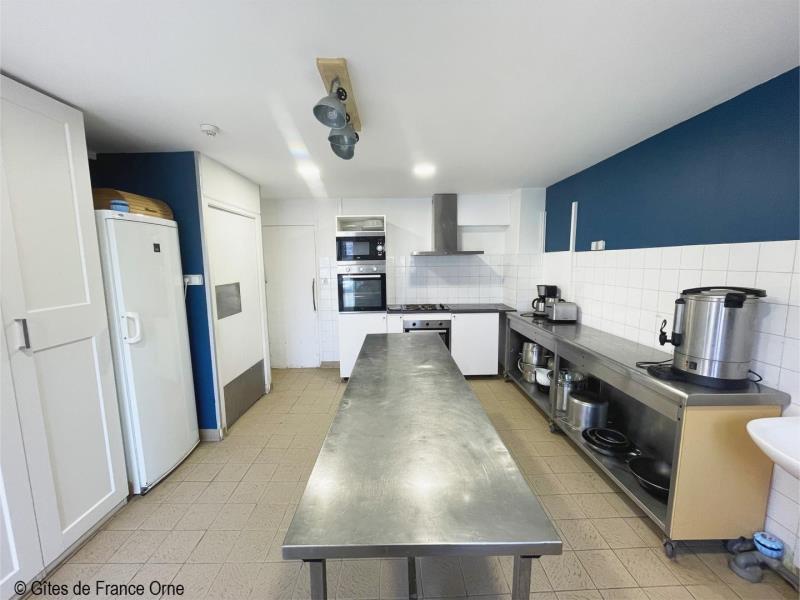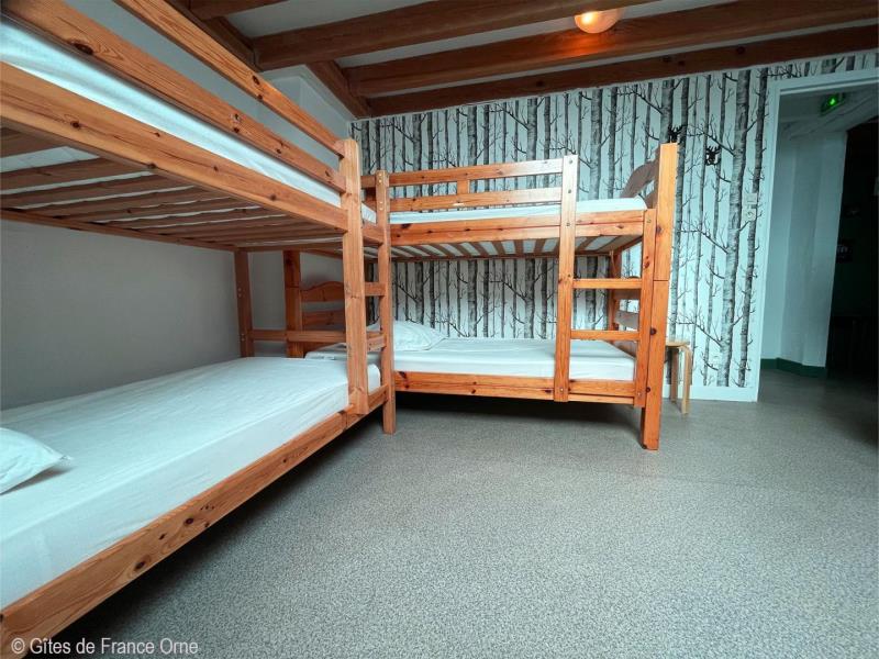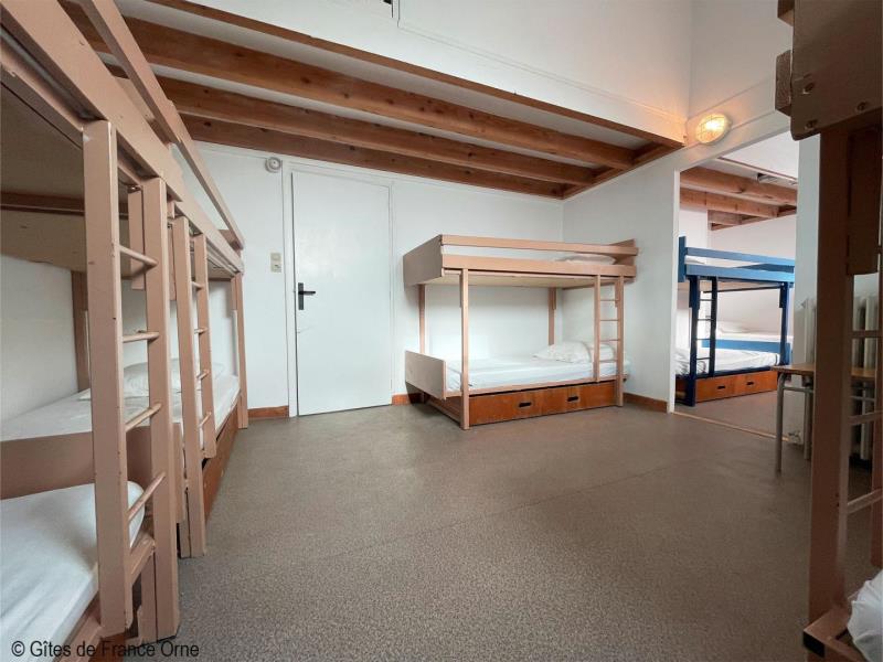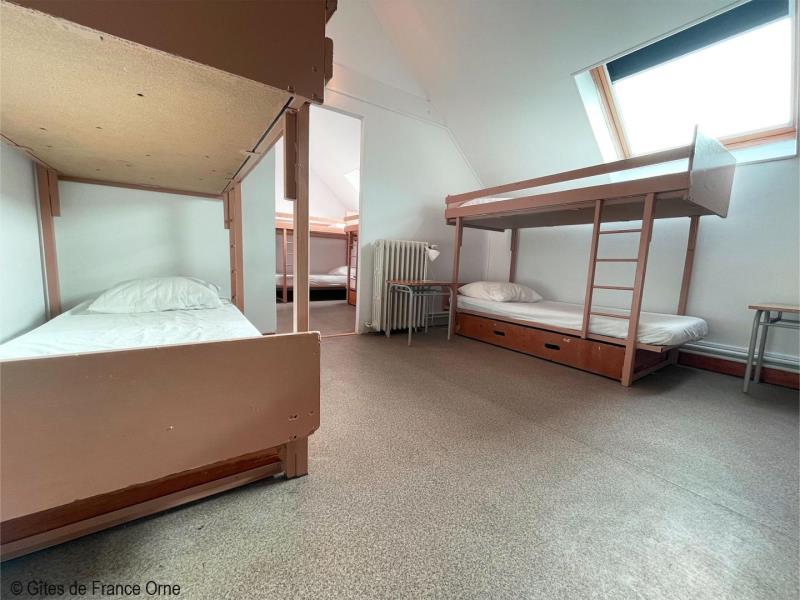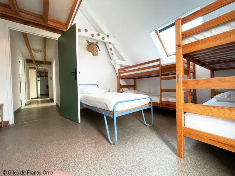 Un panorama époustouflant ! Ce gite domine le Parc Naturel Régional du Perche sur plusieurs kilomètres avec ses routes touristiques des châteaux et abbayes. A 3 kms, la Petite Cité de Caractère de Mortagne au Perche avec ses nombreux commerces. Maison indépendante à proximité des propriétaires. - Rez de jardin avec terrasse : deux salles : le salon de 55m² et la salle à manger de 40 m², cuisine, arrière cuisine et cellier,1 chambre et Sanitaires avec 2 douches, 3 wc indépendants. A l' étage : 10 chambres de 2 à 8 couchages pour 1 personne (lits simples et lits superposés), sanitaires avec 3 wc, 4 douches. Second bâtiment attenant : Chambre 1 (lit double, 2 lits simples), chambre 2 (lit double), chambre 3 (lit double, lit simple), 2 douches et 2 wc. Chambre (lit double, convertible) avec salle d'eau privative. Chauffage central. Terrain clos. Herbages avec chevaux, moutons, chèvres et animaux de basse cour. Lumière et sono en option. Taxe de séjour à payer par nuit et par adulte.