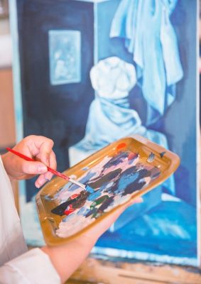 Elle rencontre aussi certaines techniques : gravure, lithographie mais trouve un bonheur sans pareil avec la peinture à l'huile.