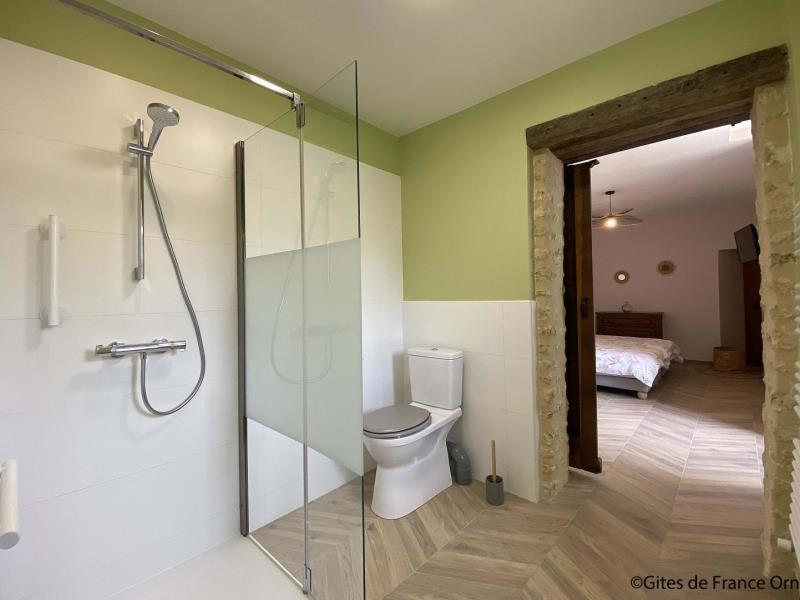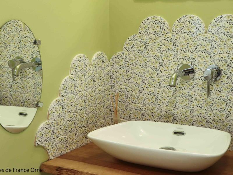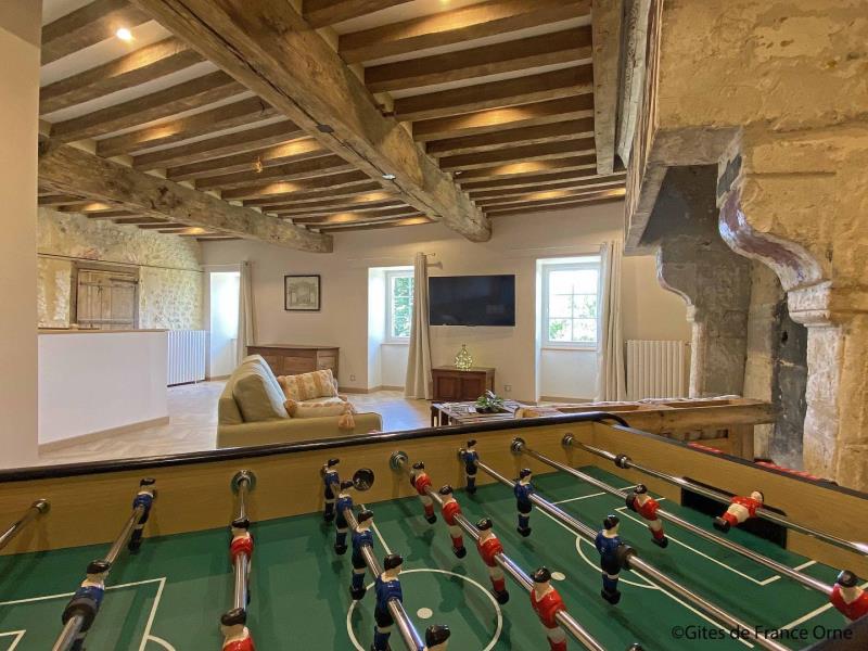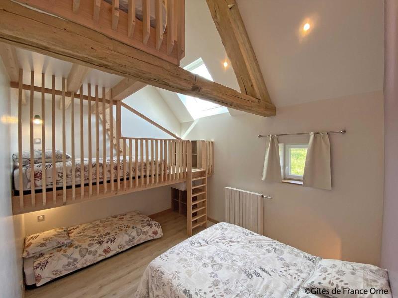 "Aux retrouvailles Percheronnes" est un ancien manoir noble qui a conservé sa cheminée armoriée (blason des familles) à l'issue d'un petit hameau. C'est un gite idéal pour les tribus jusqu'à 13 personnes. Vous allez aimer la grande terrasse plein Sud et Ouest, les prairies qui entourent le gite, les volumes intérieurs et les 3 salles d'eau, sans oublier le babyfoot ! La base de loisirs du Pays Mêlois est à moins de 10 minutes avec son étang de baignade gratuit mais aussi mini-golf, pédalos, jeux... Incontournable aussi : la Petite Cité de Caractère de Mortagne au Perche, son marché et ses commerces. Laure, qui réside dans le hameau et sa sœur Amélie sauront vous conseiller au mieux pour découvrir la richesse du Perche. Maison de pays indépendante en formule tout inclus, avec chauffage en aérothermie. Rez de chaussée : hall d'entrée avec wc indépendant, petit salon avec canapé et TV, salle à manger avec cuisine équipée, chambre adaptée aux personnes en situation de handicap avec 2 lits 90 x 190 cm jumelables, TV, salle d'eau et wc privatifs. Etage : grand salon avec TV, canapé-lit confortable 2 personnes 140 x 190 cm, cheminée monumentale décorative et babyfoot, salle de bains avec baignoire, douche et double vasque, salle d'eau avec douche, wc indépendant et lave-main, chambre avec lit 2 personnes 140 x 190 cm et 3 lits 90 x 190 cm dont 2 en mezzanine, chambre avec 2 lits 80 x 200 cm jumelables et 2 lits 90 x 190 cm jumelables en mezzanine. Terrasse et jardin arboré non clos avec portique et plancha. Possibilité abri vélos et motos. Accueil de cavaliers avec herbage sur demande.