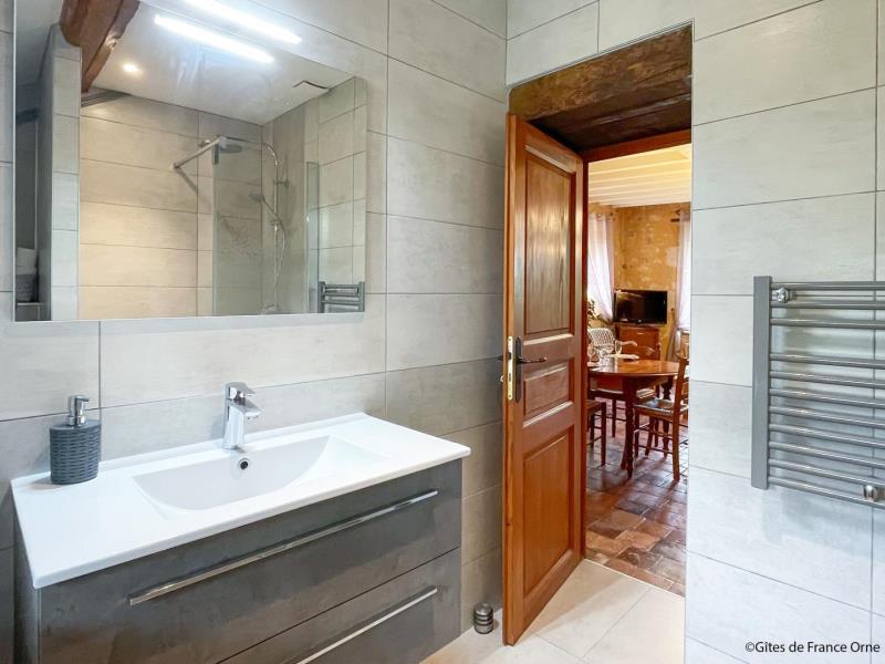 Bienvenue dans une maison percheronne située au cœur d'une région pleine de charmes et de curiosités. Gîte à la ferme avec ses prairies et sa tranquillité !!! Maison ancienne indépendante de plain-pied. Séjour (poêle à bois), cuisine, salle d'eau, WC, 2 chambres (1 lit 2 personnes en 160x200 ; 2 lits 1 personne 90x200, lit enfant). Chauffage électrique. Jardin 750 m².