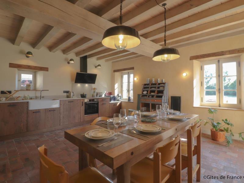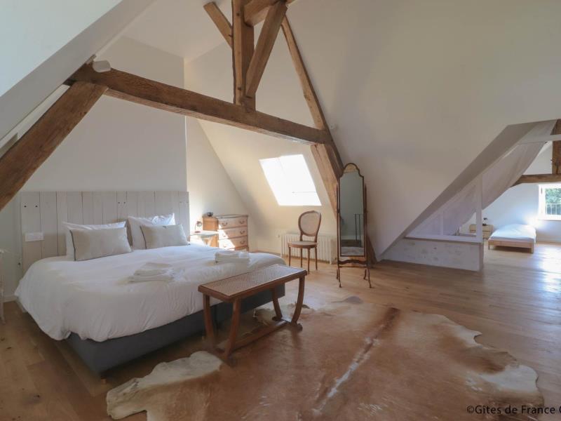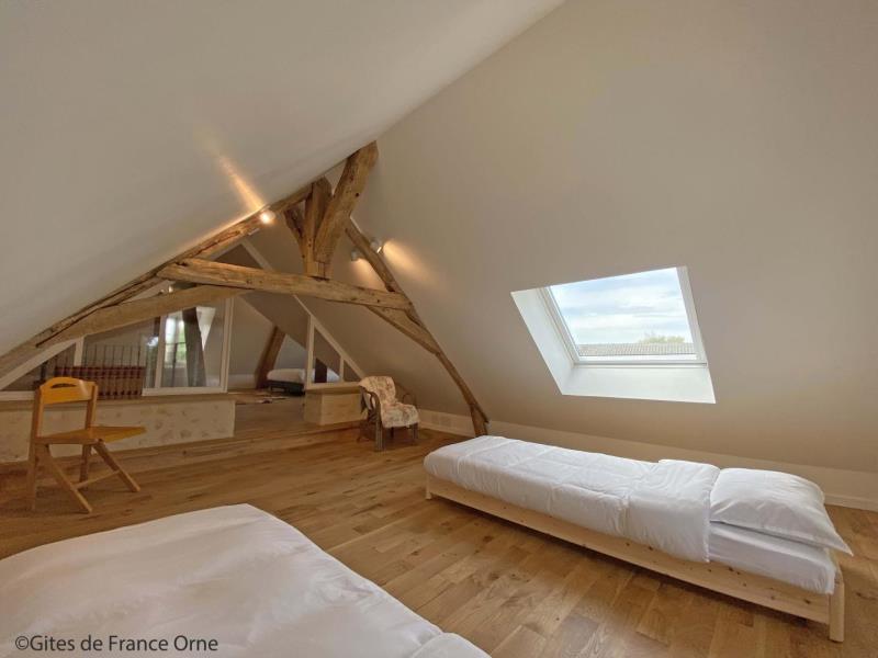 La Ferme de la Porte est une ancienne propriété agricole de 13 hectares, à seulement 2 km de la Petite Cité de Caractère de Mortagne au Perche (tous commerces et services). Ce gite a été restauré dans les règles de l'art avec de la tomette ancienne, les poutres d'origine, des enduits à la chaux et du mobilier chiné dans les brocantes du Perche. Vous profiterez d'équipements confortables et modernes dans un cadre naturel riche et préservé. Michèle aura plaisir de vous accueillir et vous guider dans la découverte de la faune et la flore qui entourent le gite. Les familles en recherche de nature seront comblées ! Maison Percheronne indépendante en formule tout compris. Rez de chaussée : Salon avec TV et cheminée non fonctionnelle, salle à manger avec cuisine équipée, enceinte connectée. Chambre (lit fait 2 personnes 160 x 200 cm) et salle d'eau attenante (douche à l'italienne) avec wc. Etage mansardé : Chambre (lit fait 2 personnes 180 x 200 cm séparable) Chambre en suite (2 lits bas 1 personne jumelables 80 x 200 cm). Salle de bains (douche + baignoire) avec wc non cloisonnés. Jardin avec mare non close et terrasse coté Est. Local vélos. Voie verte à 500 mètres.