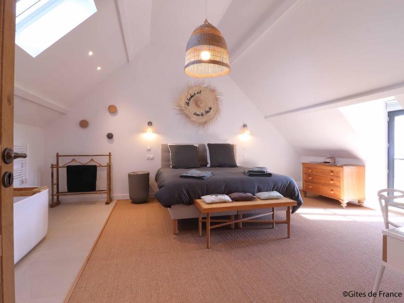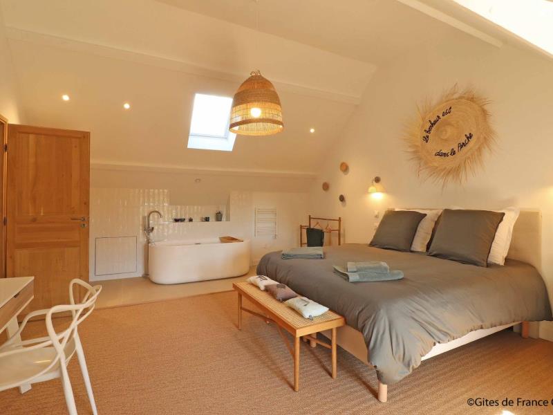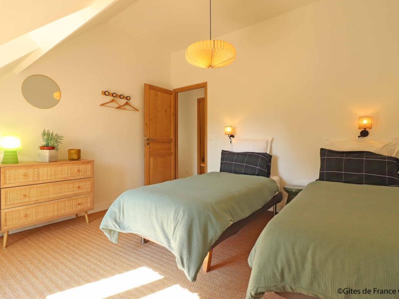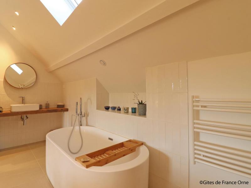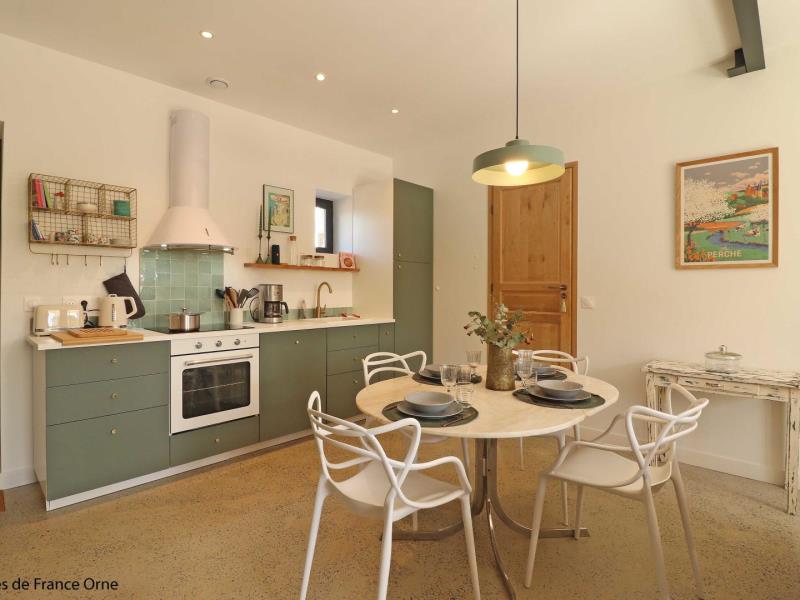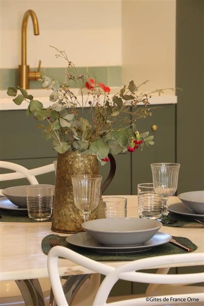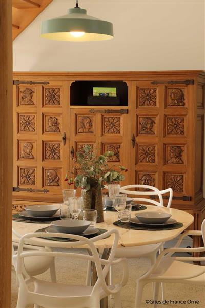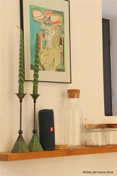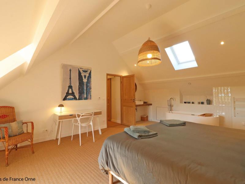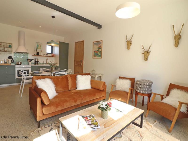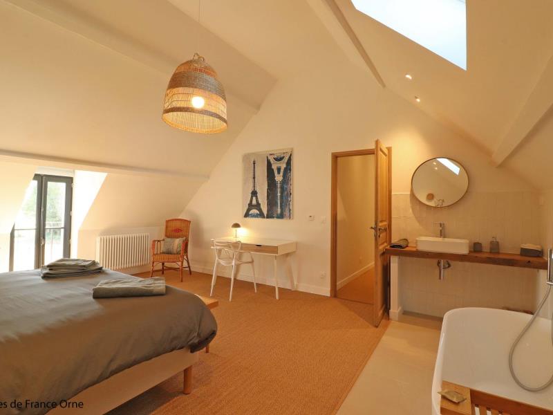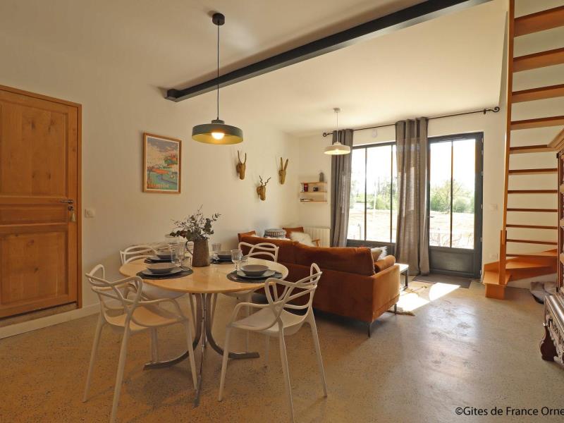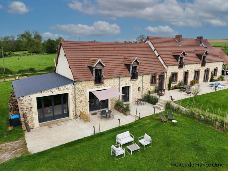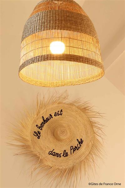 Le gite La Barie est une longère Percheronne à l'issue d'une petite route où coule une rivière en contre bas. L'environnement est calme sur une propriété de 8 ha entourée de prairies. A 1 km de tous les commerces de proximité du village de Bazoches sur Hoëne, dont massage et spa à l'institut de beauté. A 7 km de la fameuse Petite Cité de Caractère de Mortagne au Perche. Maison ancienne, mitoyenne aux propriétaires, en formule tout inclus : Rez de chaussée : séjour de 60 m² avec baie vitrée, espace salon (TV, station Bluetooth) et cuisine parfaitement équipée. Etage : chambre de 32 m² avec literie haut de gamme 2 personnes 180 x 200 cm, grand bureau (idéal télétravail avec la fibre) et salle de bains ouverte (baignoire îlot). chambre mansardée avec 2 lits 1 personne 90 x 200 cm jumelables, salle d'eau et wc séparés. Buanderie commune avec lave-linge et sèche linge. Terrasse exposée Sud Ouest sur jardin arboré non clos. Boulodrome, badminton, vélos à assistance électrique. Parking privatif équipé d'une prise de recharge pour véhicules électriques. Possibilité de compléter la capacité du gite par une chambre d'hôtes de 2 personnes.