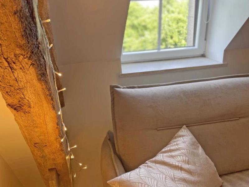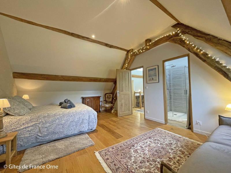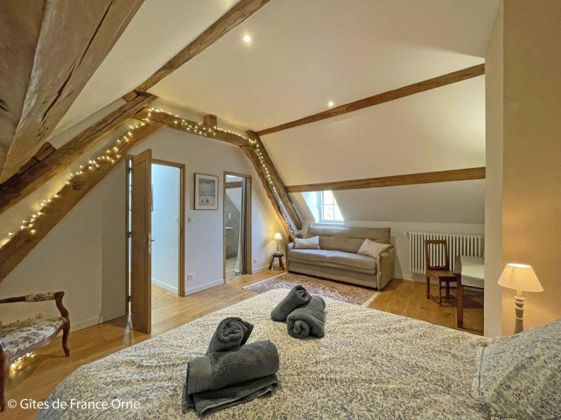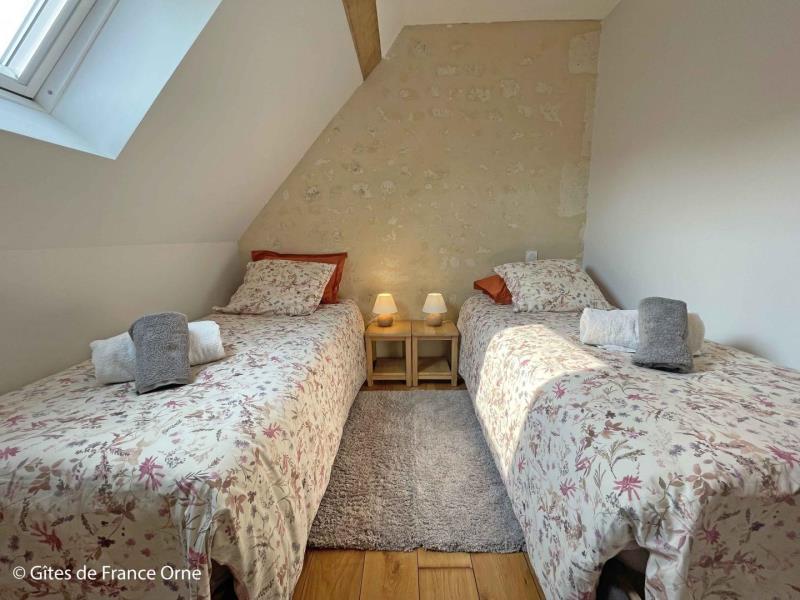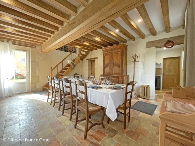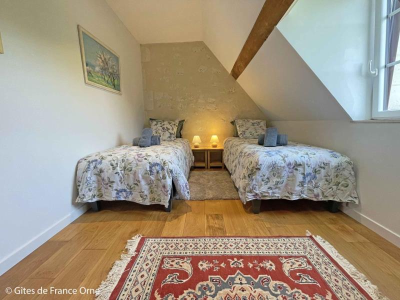 Superbe restauration dans la tradition percheronne pour ce gite très confortable avec poutres, tomettes et menuiseries en chêne du pays ! Vous ne serez pas déçus par la qualité de la literie haut de gamme et le cadre verdoyant du Perche. Le gite est un point de départ idéal pour des randonnées à vélo ou à pied (voie verte à 400m, et localisation au coeur des routes tranquilles du Perche) ! Anne-Cécile propose de vous faire découvrir son exploitation agricole (cultures, vaches allaitantes) et goûter son délicieux jus de pommes ! Chiens, chats, poules, tous très accueillants, viendront égayer votre séjour. Anne Cécile vous proposera de visiter sa ferme, voire caresser et nourrir les animaux. Mini-golf, terrain de pétanque et restaurant dans le village. Animaux refusés (les animaux sur place tenant à leur exclusivité !). Maison percheronne mitoyenne à un autre gite. Rez de chaussée : séjour avec salon et chaine hifi, cuisine aménagée, cabinet de toilette, buanderie. Etage : palier avec rangement, chambre (1 lit 2 personnes 160 cm, canapé lit 2 personnes en 160 cm très confortable) avec salle d'eau et wc , chambre (2 lits 1 personne jumelables), chambre (2 lits 1 personnes jumelables), salle d'eau avec wc. Chauffage central au bois déchiqueté au sol au rez de chaussée et radiateurs à l'étage. Draps et linge de toilette fournis. Jardin de 1000 m² sur propriété avec verger et mare close. Terrasse avec transats Possibilité d'augmenter la capacité avec un autre gite mitoyen de 2 chambres (jusqu'à 6 personnes en +). Présence sur place de deux chiens adorables