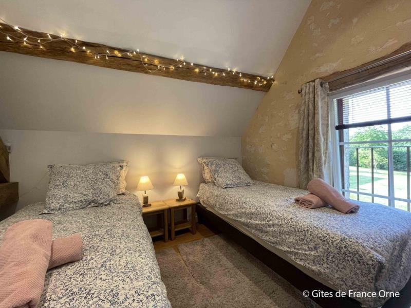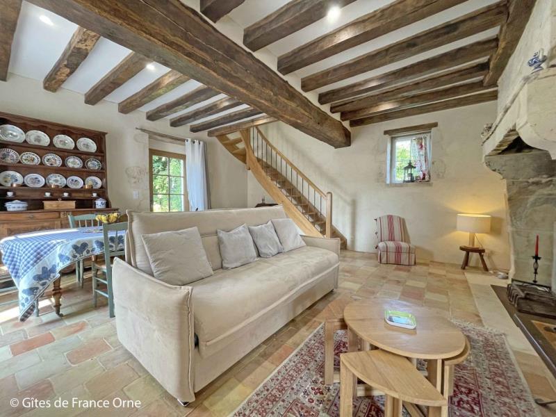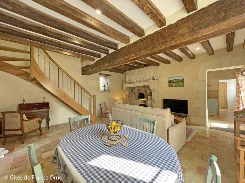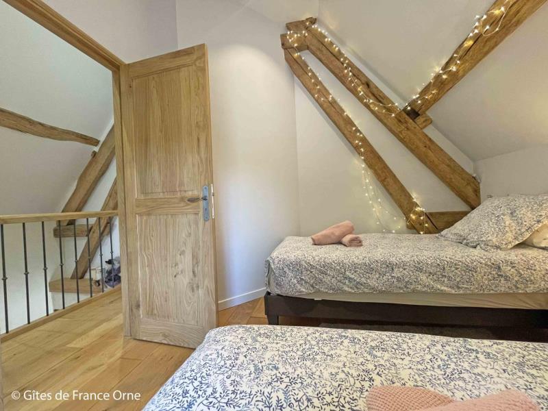 Au cœur du Perche, ce charmant gite plein de caractère a été restauré dans les règles de l'art (tomettes, poutres, menuiseries en chêne du pays, four à pain XVeme...) avec tout le confort moderne et des équipements de qualité (dont une literie haut de gamme) en formule tout inclus. Situé à 400 mètres de la voie verte, vous profiterez des randonnées dans une campagne verdoyante et riche en architecture. Le gite est un point de départ idéal pour des randonnées à vélo ou à pied ! Anne-Cécile propose de vous faire découvrir son exploitation agricole (cultures, vaches allaitantes) et goûter son délicieux jus de pommes ! Chiens, chats, poules, tous très accueillants, viendront égayer votre séjour. Anne Cécile vous proposera de visiter sa ferme, voire caresser et nourrir les animaux. Mini-golf, terrain de pétanque et restaurant dans le village. Animaux refusés (les animaux sur place tenant à leur exclusivité !). Maison percheronne mitoyenne à un autre gite. Rez de chaussée : séjour avec canapé convertible très confortable, cuisine aménagée, cabinet de toilette, buanderie. Etage : palier avec rangement, chambre (2 lits 1 personne jumelables, lit enfant, chambre (1 lit 2 personnes 160 cm), salle d'eau avec wc. Chauffage central au bois déchiqueté au rez de chaussée et radiateurs à l'étage. Cour et jardin arboré avec mare close. Terrasse avec transats. Draps et linge de toilette fournis. Présence de deux chiens adorables sur la propriété. Possibilité d'augmenter la capacité avec un autre gite mitoyen de 3 chambres (jusqu'à 8 personnes en +).