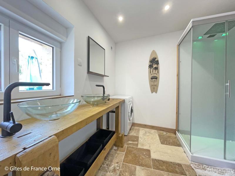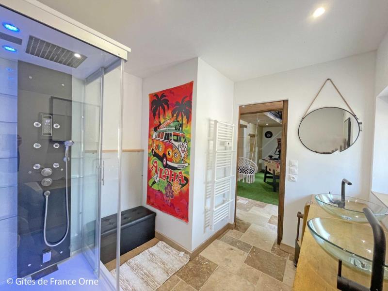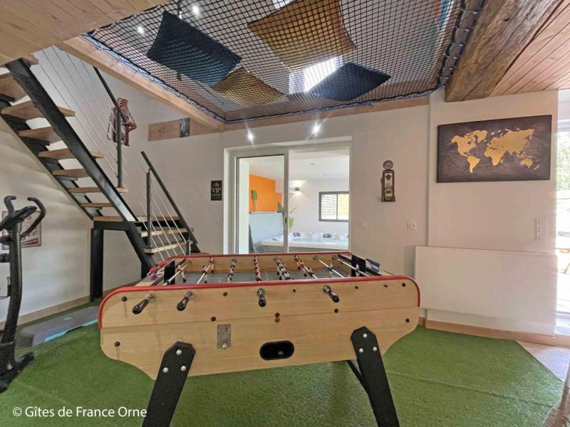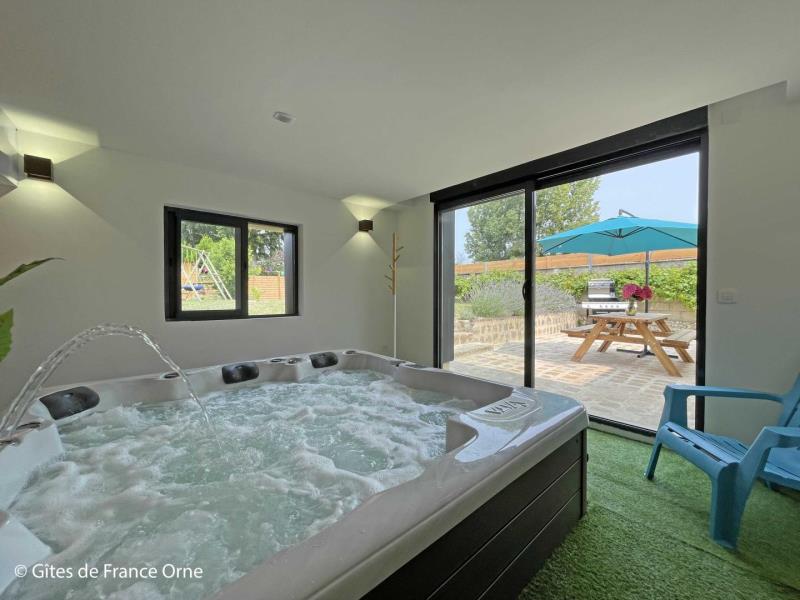 Jolie maison de famille entièrement refaite à neuf, avec beaucoup de charme et équipée d'un spa privatif ! Idéalement située avec sa position centrale dans le Perche : à proximité d'activités nature avec l'étang de la Herse pour la pêche et à moins de 2 km d'une voie verte pour des balades à pied ou à vélo et visites culturelles avec les petites cités caractères tout autour comme Bellême, Longny au perche, la Perrière et Mortagne-au-Perche. Maison ancienne en pierre, mitoyenne sur deux niveaux. Rez-de-chaussée : Grande pièce à vivre avec cuisine, salon/salle à manger avec canapé lit 2 places. Salle d'eau avec douche hammam et wc indépendants. Spa Desjoyaux 5 places dans une pièce de 20 m2. Espace de jeux avec baby-foot, step et vélo d'appartement. Premier étage. Trois chambres dont une sous plafond ouverte sur le palier fermée par un rideau et chacune un lit double 140/190 cm fait à l'arrivée. Espace de jeux pour les enfants avec un filet suspendu. Grande terrasse de 30 m2 et jardin clos de 300 m² avec portique et une cabane pour les enfants et les ados au fond du jardin avec des jeux d'extérieur. Petits chiens acceptés sur demande (15€/jour). un panier de bois fourni pour le poêle : + 10€ par panier supplémentaire. Possibilité d'être jusqu'à 8 personnes. Parking à 200 mètres.
