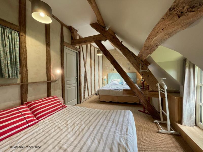 Au sein d'un petit hameau tranquille organisé autour d'un vaste étang, ce gite lumineux et coloré a été restauré avec authenticité et goût. Vous pourrez visiter la petite cité de caractère de Bellême et la forêt domaniale réputée pour ses chênes plusieurs fois centenaires et ses champignons. Maison percheronne totalement indépendante. Rez de chaussée : séjour (poêle à bois), salon, cuisine, salle d'eau avec wc. Étage : chambre (1 lit 2 personnes 180 x 200 cm séparable, petit bureau), chambre (1 lit 2 personnes 160 x 200 cm séparable, 1 lit BZ 2 personnes en 140), chambre (1 lit 2 personnes 160 x 200 cm séparable), salle de bains mansardée avec baignoire d'angle, wc indépendant. Chauffage bois et électrique inclus. Dépendance de 55 m² avec salon de jardin, plancha, barbecue, table de ping pong, baby-foot et jeux de croquet. Jardin 500 m² (bains de soleil) avec un étang clos. Jeux de boules, badminton. Internet haut débit. wifi relié par la fibre