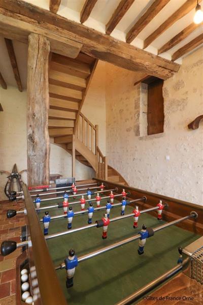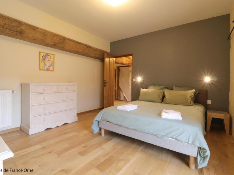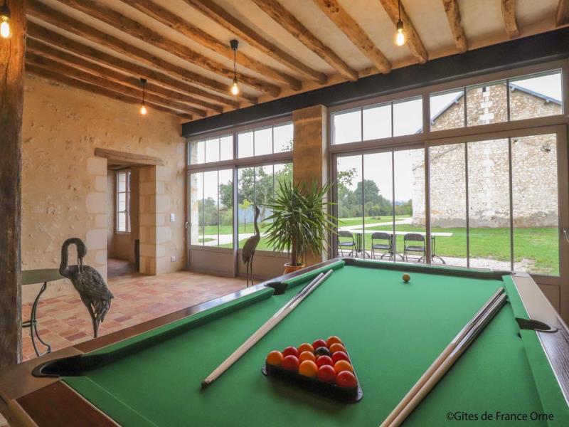Le gîte de la Petite Vove est l'ancienne demeure du fermier du prestigieux manoir de la Vove, l'un des plus beaux du Perche. C'est un lieu empreint d'histoire et de charme qui appartient à la famille d'Anne-Marie depuis plus d'un siècle et aujourd'hui restauré dans la pure tradition percheronne (tomettes, poutres, parquets massifs et enduits à la chaux). Toutes les magnifiques portes en chêne ont été réalisées avec le bois de la propriété, sans oublier la mise en valeur de l'authentique four à pain dans le salon. Vous profiterez d'un accès direct à la voie verte qui longe le verger et qui rejoint la forêt domaniale de Réno Valdieu. Aucun vis à vis. La spacieuse salle de jeux ravira les familles ou les groupes d'amis. Possibilité de services à domicile sur demande : prestation ménage, chef cuisinier, location de vélos. Maison totalement indépendante en formule tout inclus. - Rez de chaussée avec chauffage au sol : salle à manger et cuisine très bien équipée (robot pâtissier), salon avec TV, salle de jeux (jeux de société, billard français et babyfoot), chbre adaptée aux personnes à mobilité réduite (lit double fait) avec salle d'eau/wc, buanderie avec wc - Etage par escalier coté cuisine : 3 chbres avec chacune 1 lit double fait 160 x 200 cm, Salle de bains et wc séparés. - Etage par escalier coté salle de jeux : 2 chbres avec chacune 1 lit double fait 160 x 200 cm, salle de bains (douche et baignoire) et wc séparés, chbre avec lit double fait 160 x 200 cm, lit simple fait 90 x 200 cm et salle d'eau privative. Terrasse donnant sur 2 hectares de jardin avec mare poissonneuse non close et verger privatifs, attenant à la voie verte. Local vélos et sellerie pour cavaliers. Terrain de pétanque homologué et table de ping-pong. Grand parking avec caméra. 15 pers. max ad., enfants et bb inclus