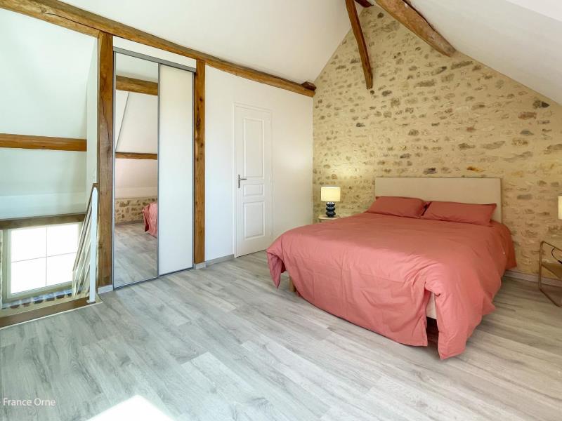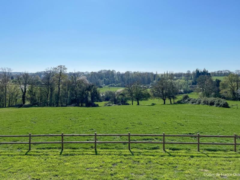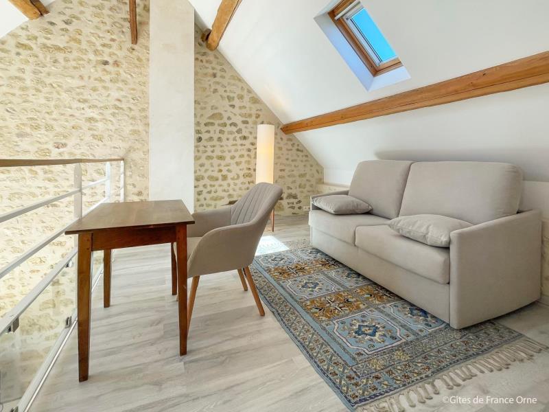Charmante maison en pierres nichée sur un vaste terrain avec prés et chevaux, non loin de Mortagne-au-Perche. Profitez des sentiers de randonnée et de la voie verte à proximité. Le gîte est également facilement accessible par la N12. Maison indépendante en pierres entièrement restaurée. Rez-de-chaussée : - séjour : cuisine ouverte équipée, espace salon avec TV, table à manger; - chambre : lit double 160x200 cm - salle de bain : baignoire, WC, lavabo Étage : - chambre en mezzanine avec lit double 140x200, espace bureau/détente et canapé lit 2 places en 140x190 cm, - WC indépendants avec lavabo Grand terrain non clos avec prés et chevaux. Voie verte à 1km et sentiers de randonnée. Producteurs bios à proximité.