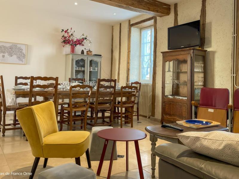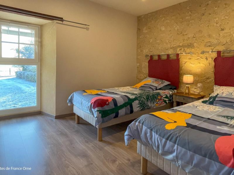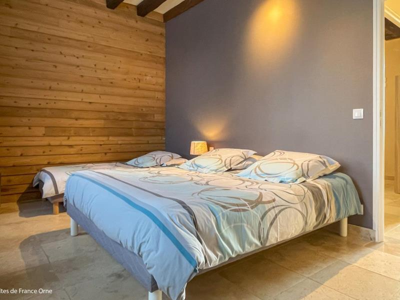 Magnifique et spacieuse longère Percheronne sur une propriété de 70 ha traversée par 3 km de rivière à truites, pour le bonheur des pêcheurs. Marylène et Alain vous accueillent à la ferme . Voie verte à 800 mètres et commerces dans le village à 2 km.. Longère indépendante. Rez de chaussée : entrée, séjour avec cuisine toute équipée et coin salon (TV), chambre (lit 2 personnes 160 cm, lit 1 personne), chambre (lit 2 personnes 160 cm), salle d'eau (douche à l'italienne) avec wc, buanderie, wc indépendant. Étage : palier (bibliothèque), salle d'eau (douche à l'italienne) avec wc, chambre (lit 2 personnes), chambre (2 lits 1 personne), chambre (4 lits 1 personne dont 2 superposés). Chauffage central bois déchiqueté. Terrasse. Jardin privatif de 2000 m² environ non clos, avec but de foot et cabane en plastique pour les enfants, table de ping pong. Possibilité garage vélos ou motos. Spa extérieur 2 places avec un supplément de 80€ pour le week-end et 100€ pour la semaine à régler sur place. Forfait ménage inclus . MAXIMUM 10 PERSONNES AUTORISÉES.