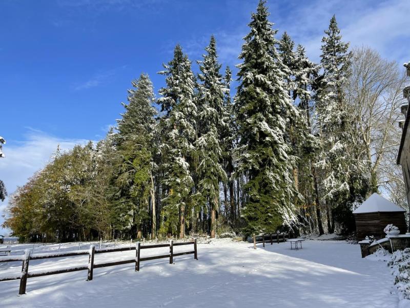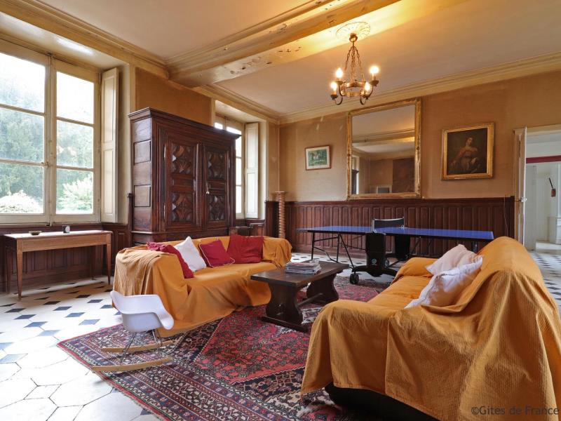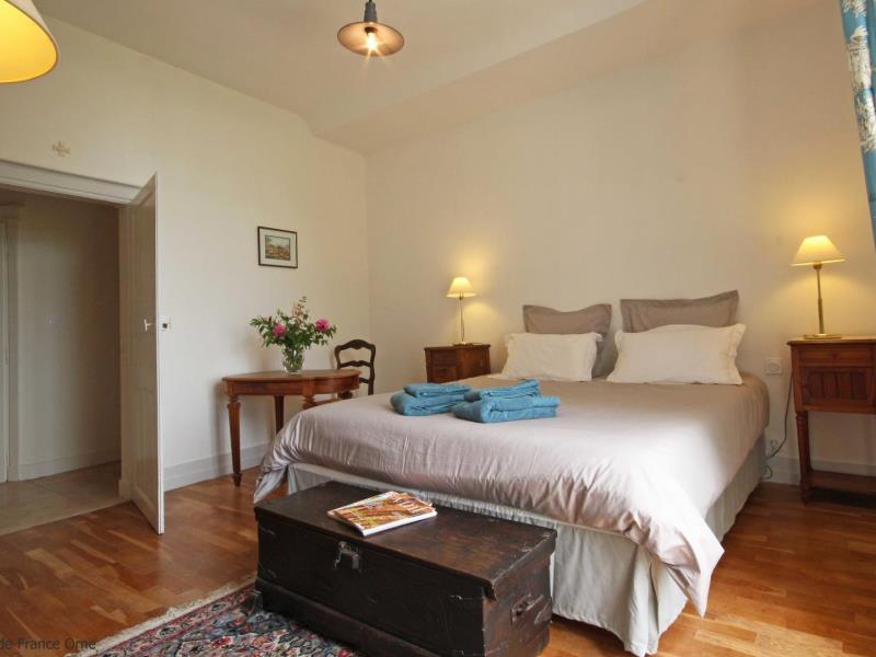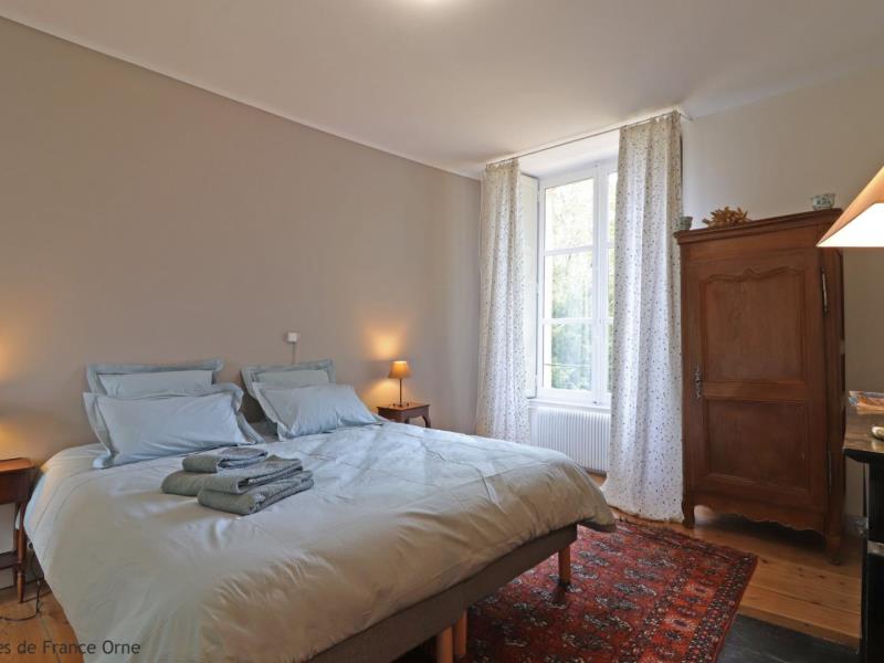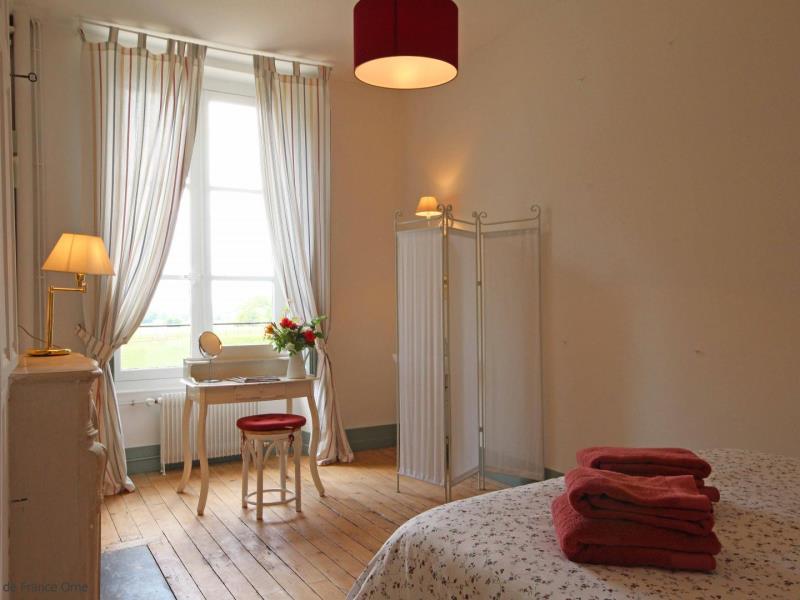 Dans le Perche, on appelle volontiers "château" ces grandes maisons aux lignes sobres et élégantes qui se devinent dans un parc boisé. Le vôtre est à Bellavilliers, charmant village qui s'organise autour d'une ravissante église. Valérie et Denis en ont hérité et ils ont décidé de l'ouvrir entièrement aux hôtes qui voudraient "vivre un peu la vie de château". Il fallait certes lui garder son âme de maison de famille où toutes les générations se retrouvent mais aussi dépoussiérer la déco et redonner du confort. 2 ans de travaux, le tri des vieux meubles, les bonnes idées des copains et des nombreux cousins et la maison est prête pour une seconde vie. Bienvenue ! Orne tourisme vous conseille : le marché de Mortagne le samedi matin et pourquoi pas une pause gourmande à La Perrière, village millénaire. Maison de maitre indépendante sur une vaste propriété. - Rez de chaussée : entrée avec wc, cuisine équipée, grand salon (cheminée non fonctionnelle), salle de jeux avec table ping pong, coin salon et cheminée à foyer ouvert. - Etage : chambre (1 lit 2 personnes 160 cm), chambre (1 lit 2 personnes 180 cm séparable), chambre (lit 2 personnes 180 cm séparable), chambre dortoir (4 lits 1 personne jumelables), chambre (lit 2 personnes 180 cm séparable), chambre (lit 2 personnes 180 cm séparable et lit d'enfant), salle d'eau avec wc, salle de bains, wc indépendant, douche indépendante. Parc arboré partiellement clos de murs et entourés d'herbages avec balançoire et animaux de basse-cour, chevaux et poneys.