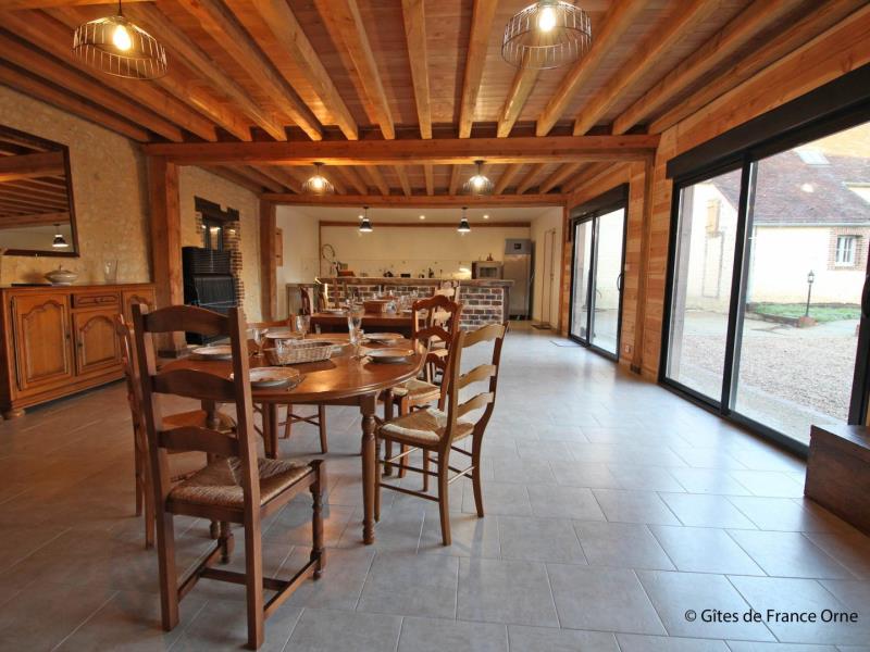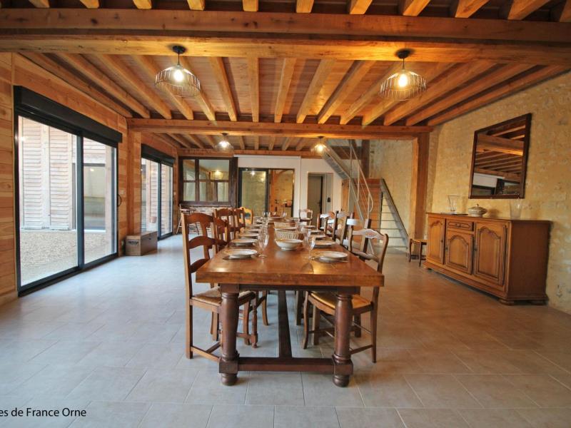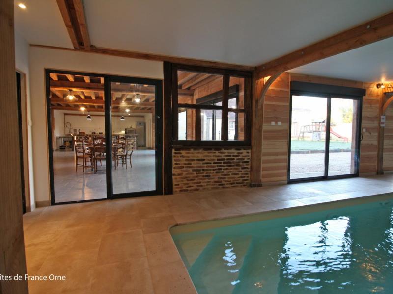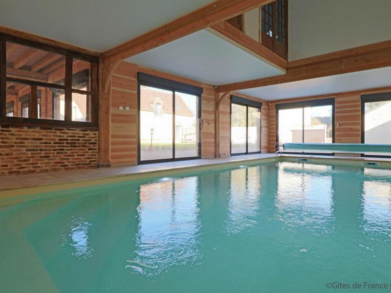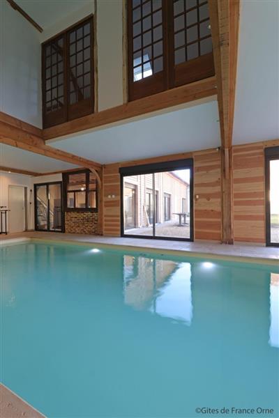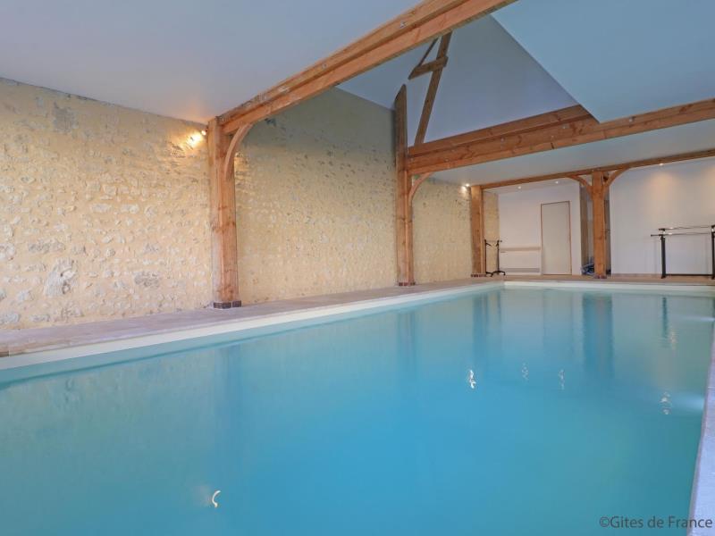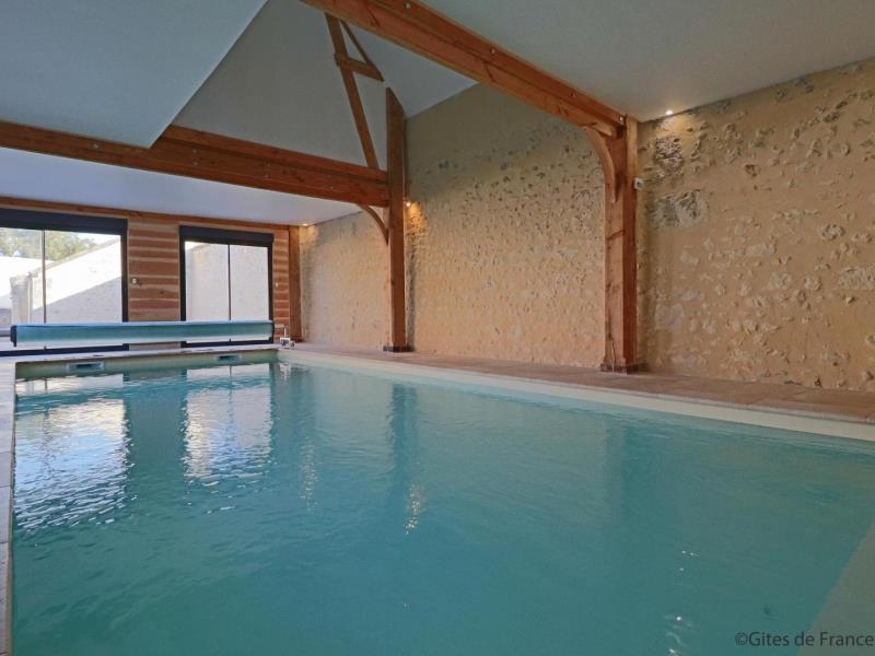 Le gite parfait pour les tribus ! La vaste salle de séjour permet de réunir les grandes familles (attention tout dépassement de capacité sera refusé). La famille Chaillou a entièrement reconstruit cette maison chauffée en autosuffisance par les panneaux solaires du toit. L'intérieur a été aménagé dans un esprit totalement récup' avec tout le confort, sans oublier une piscine accessible depuis le séjour aux dimensions de rêve... Un vidéo projeteur et une enceinte sono bluetooth sont mis à disposition Les draps pour le lit bébé ne sont pas fournis Maison avec accès direct à la piscine d'intérieure privative 9 x 4 mètres, équipée de la nage à contre courant, chauffée toute l'année et douche, mitoyenne à un autre gite de 9 personnes (G842). R.d.c : vaste séjour avec cuisine, 2 wc indépendants avec lavabo. Etage : salon (TV) sur le palier, chambre (2 lits 2 personnes 140 cm), chambre (lit 2 personnes 140 cm), chambre (lit 2 personnes 140 cm), salle d'eau avec douche à l'italienne, wc indépendant, chambre (2 lits 2 personnes 140 cm), chambre (lit 2 personnes 140 cm, lit bébé), salle d'eau avec wc. Chambre par accès extérieur de plain pied, adaptée aux personnes à mobilité réduite (lit 2 personnes) avec salle d'eau privative et wc. Cour commune close avec pelouse, portique et maisonnette pour enfants. Table de ping-pong. Possibilité abri vélos et motos. Chauffage solaire par le sol inclus. Animal accepté sur demande moyennant 30€. Piscine interdite aux enfants non accompagnés. Plongeon interdit.