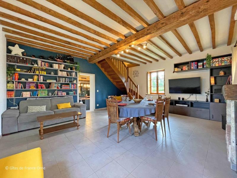 Situé au bout d'une impasse dans un hameau très calme, le gite offre une vue magnifique sur la campagne environnante à seulement 5 kilomètres de la N12 vers Paris. Depuis Villiers sous Mortagne, vous serez idéalement bien placés pour visiter le Perche et ne rien manquer de cette belle région Normande connue pour ses nombreux manoirs et chemins de randonnées. Dominique et François sauront vous conseiller pendant votre séjour pour tout connaître sur l'histoire du Perche, les lieux à ne pas manquer et les bons plans ! Rez de Chaussée : Cuisine équipée wc indépendant salon/salle à manger accessible avec quelques marches avec un insert Étage : Chambre pour deux personnes avec un lit double 140/190 cm Chambre avec 2 lit une personne 90/190 cm Chambre accessible avec quelques marches avec un lit double 160/200 cm et salle de bains privative Salle d'eau avec wc Terrain de 500 m2 avec terrasse de 20 m2 Situé à 2km de la Véloscénie