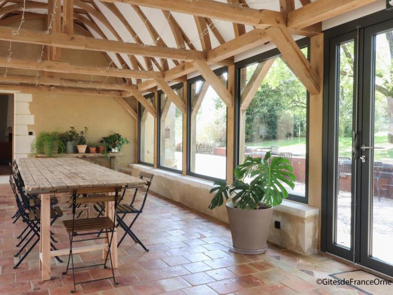 Le Val Gaudry est un superbe domaine de 4 hectares, entièrement privatif, avec deux espaces de réception à votre disposition pour l'organisation de vos évènements ou séminaires. La vue sur le parc vous permettra de profiter pleinement de la nature environnante toute l'année. La sublime charpente du jardin d'hiver en forme de coque de bateau inversée et ses innombrables plantes vous offrent un décor atypique. Cet espace entièrement vitré s'ouvre sur une superbe vue à 360° donnant sur la piscine, le parc et la cour de la maison. Une magnifique adresse qui vous offre confort et modernité dans un bâti authentique et chargé d'histoire ! Ancienne ferme Percheronne de 700 m² entièrement réservée aux hôtes : Jardin d'hiver 97 m² (jusqu'à 90 personnes assises), Cuisine de 40 m² entièrement équipée, Salon de musique avec piano à queue, guitares, vinyles et cheminée, Salon avec bar, grand écran et vidéo projecteur pour vos soirées cinéma et karaoké, Salle de billard américain, wc indépendant. Chambres : jusqu'à 28 personnes. Location pour 12 personnes minimum (4 suites principales) puis ajout de suites complémentaires en option. La maison dispose de 6 suites de 2 personnes dont une équipée PMR et une accessible de plain-pied, de 2 suites de 4 personnes et d'un dortoir de 8 personnes. Chaque suite bénéficie d'une salle d'eau privative et d'un wc indépendant. Extérieur : Tente 210 m² avec parois amovibles (jusqu'à 200 personnes assises) Parc avec piscine 4x11 m chauffée de mai à septembre, traitée au sel. Verger.