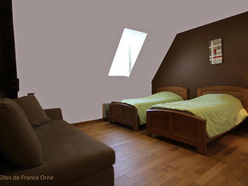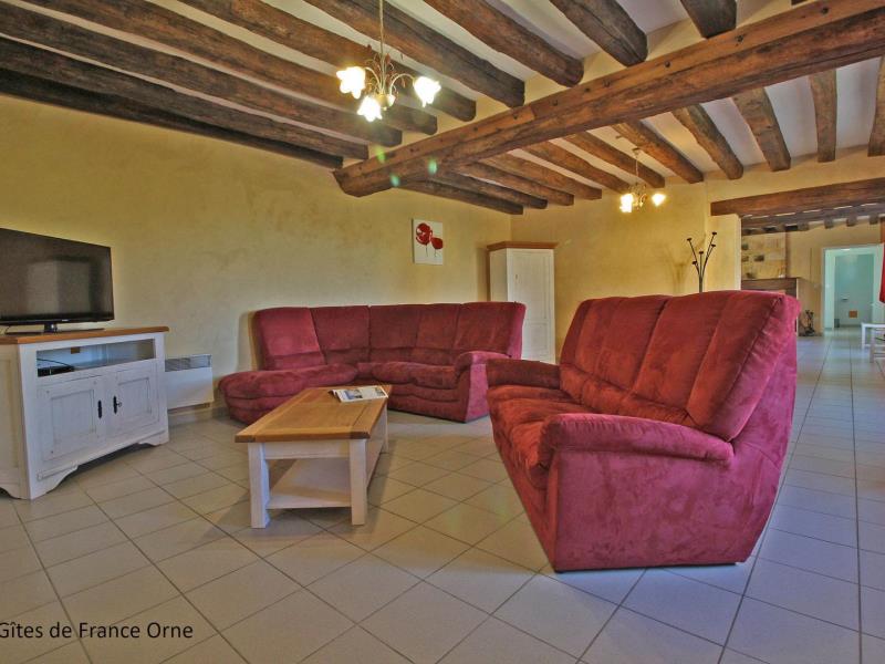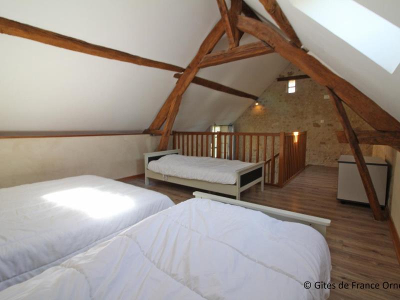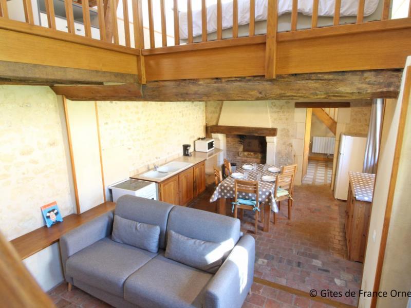 Aux portes de Mortagne, à deux pas de la Voie Verte, tout le charme d'une longère percheronne s'ouvrant sur les herbages. Possibilité local vélo ou salles d'activité. Le Perche cultive un art de vivre à l'image de ses chevaux : tout en force et en douceur. Ancien moulin comprenant 2 bâtiments : Rez de chaussée du moulin (capacité 10 personnes) : séjour avec poêle et salon, office cuisine, 1 chambre accessible aux personnes handicapées (1 lit 2 personnes), salle d'eau/wc. wc indépendant. Etage : 1 chambre (1 lit 2 personnes), salle d'eau/wc. 1 chambre (2 lits 1 personne), salle d'eau/wc. 1 chambre (1 lit 2 persones). 1 chambre (1 canapé BZ 2 personnes). Salle d'eau. wc indépendant. Dépendance annexe (capacité 5 personnes) : séjour (canapé lit) avec coin cuisine, mezzanine (1 lit 2 personnes, 2 lits 1 personne), salle d'eau/wc. Chauffage électrique. La dépendance peut se louer séparément : de 20 € à 24 € / personne la nuit. Terrain de 2 ha avec mare close.
